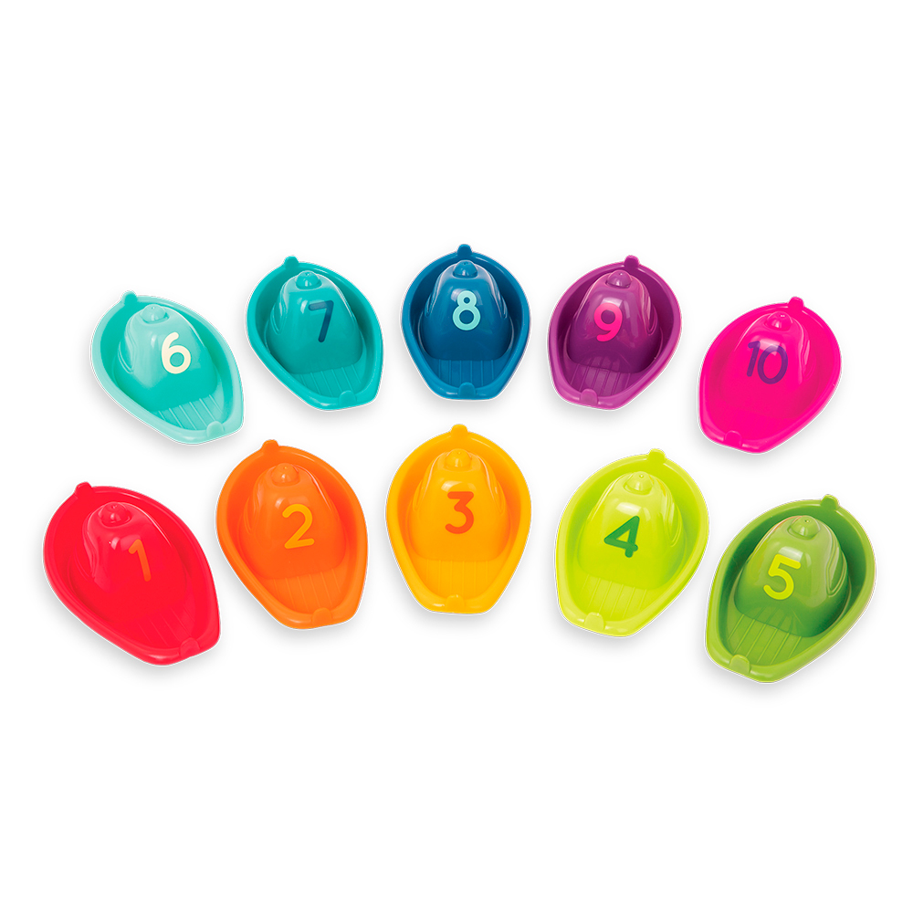 Votre enfant est le capitaine de la baignoire, il est donc aux commandes de cette flotte de bateaux colorés.