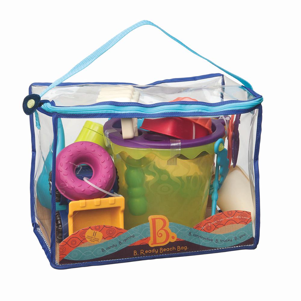 Un sac rempli de jouets pour aller à la plage ou au parc.