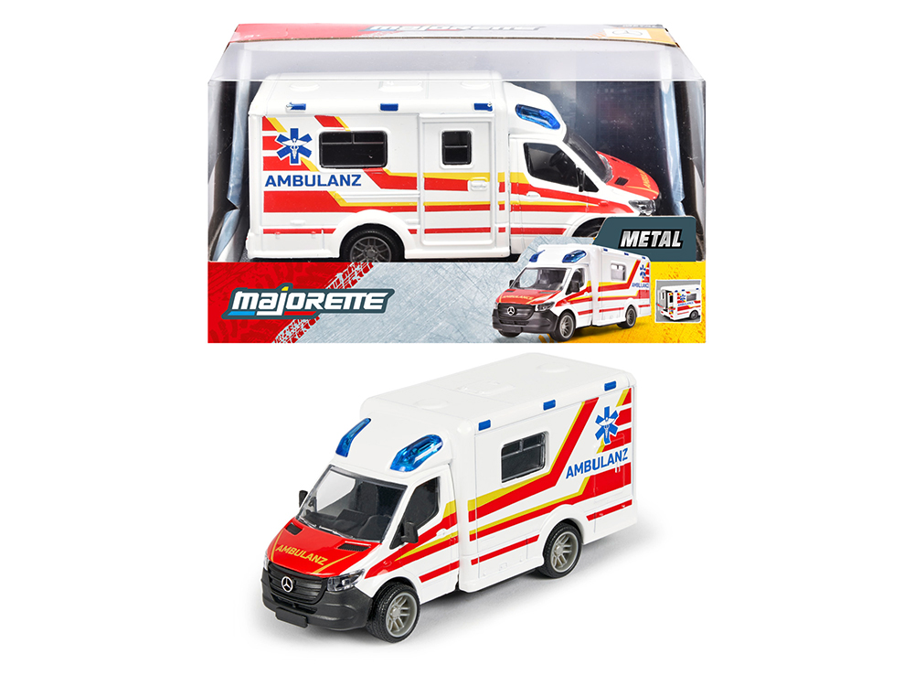 Intervenez dans toutes les urgences avec l’ambulance Mercedes-Benz Sprinter! Ce modèle réaliste à roues libres comprend une cabine et une carrosserie en métal moulé, une porte arrière ouvrante et des accessoires pour enrichir le jeu. Avec ses pneus souples en caoutchouc et son format 15 cm à l’échelle 1:43, il séduira autant les jeunes secouristes que les collectionneurs.