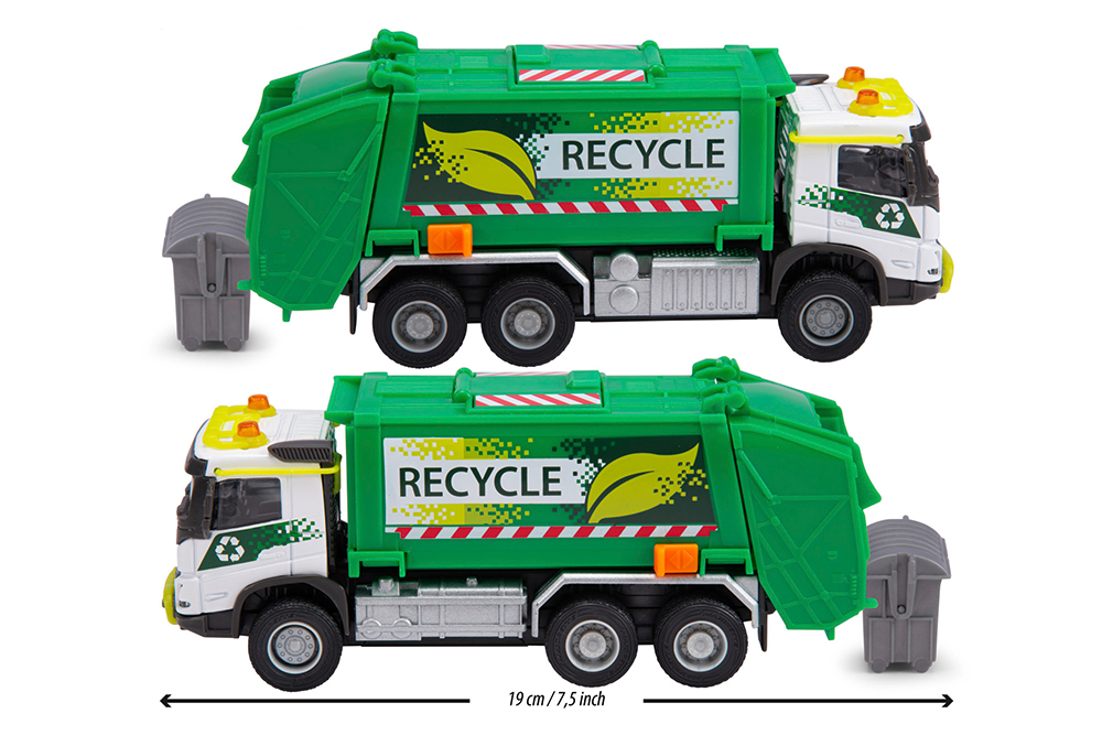 Le camion à ordures Majorette Volvo est un jouet de qualité supérieure. Il fait partie de la série Majorette à l'échelle 1:43 et comprend des effets sonores et lumineux, des pneus en caoutchouc et une poubelle à couvercle ouvrant qui peut être soulevée et vidée. Le véhicule est inspiré de l'original Volvo et dispose d'une poubelle entièrement fonctionnelle.