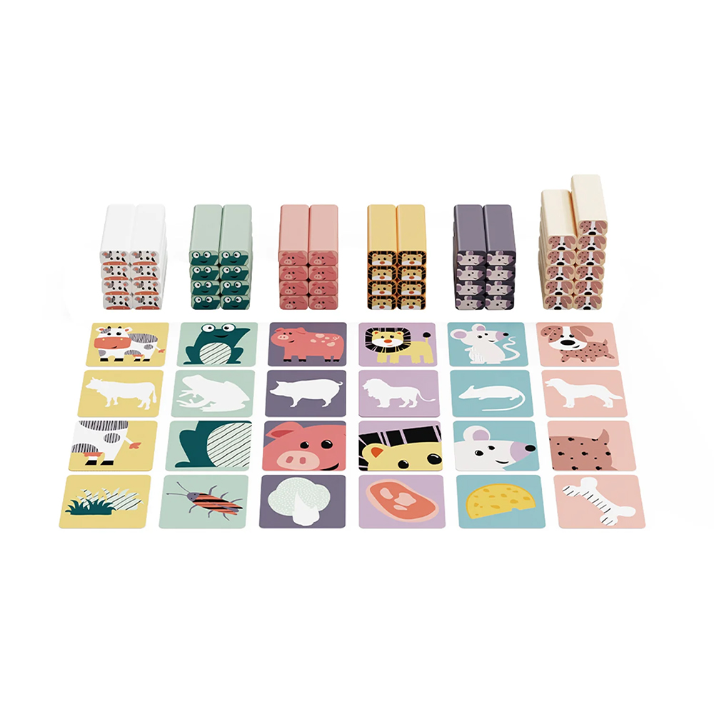 Qu'il s'agisse d'un jeu classique de tour branlante, de dominos amusants ou de construction créative, ce jeu d'adresse offre un plaisir sans fin. Avec leurs amis et leur famille, les enfants construisent une grande tour. Pour ce faire, ils placent les uns sur les autres les blocs de bois colorés avec de jolis motifs d'animaux. Et c'est là que le jeu commence! À tour de rôle, ils lancent le dé ou tirent une carte, l'un après l'autre. « Quel animal vois-tu? - Un chien! » Ils tirent ensuite avec précaution le bloc de bois correspondant à l'animal indiqué hors de la tour et le placent sur le dessus. Mais attention! Si la tour s'effondre, le jeu est terminé et il faut tout recommencer. Les enfants laissent libre cours à leur imagination en réalisant des constructions créatives avec les blocs de bois colorés. Les blocs de bois encouragent également les enfants à créer de nouveaux motifs, encore et encore. Ce jouet éducatif amusant favorise le développement des jeunes enfants et stimule leur créativité. En même temps, les enfants exercent leur patience, leur dextérité et leur coordination œil-main.