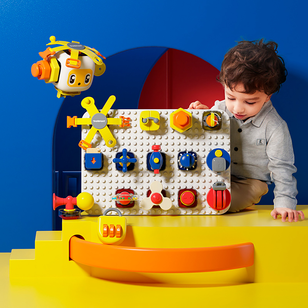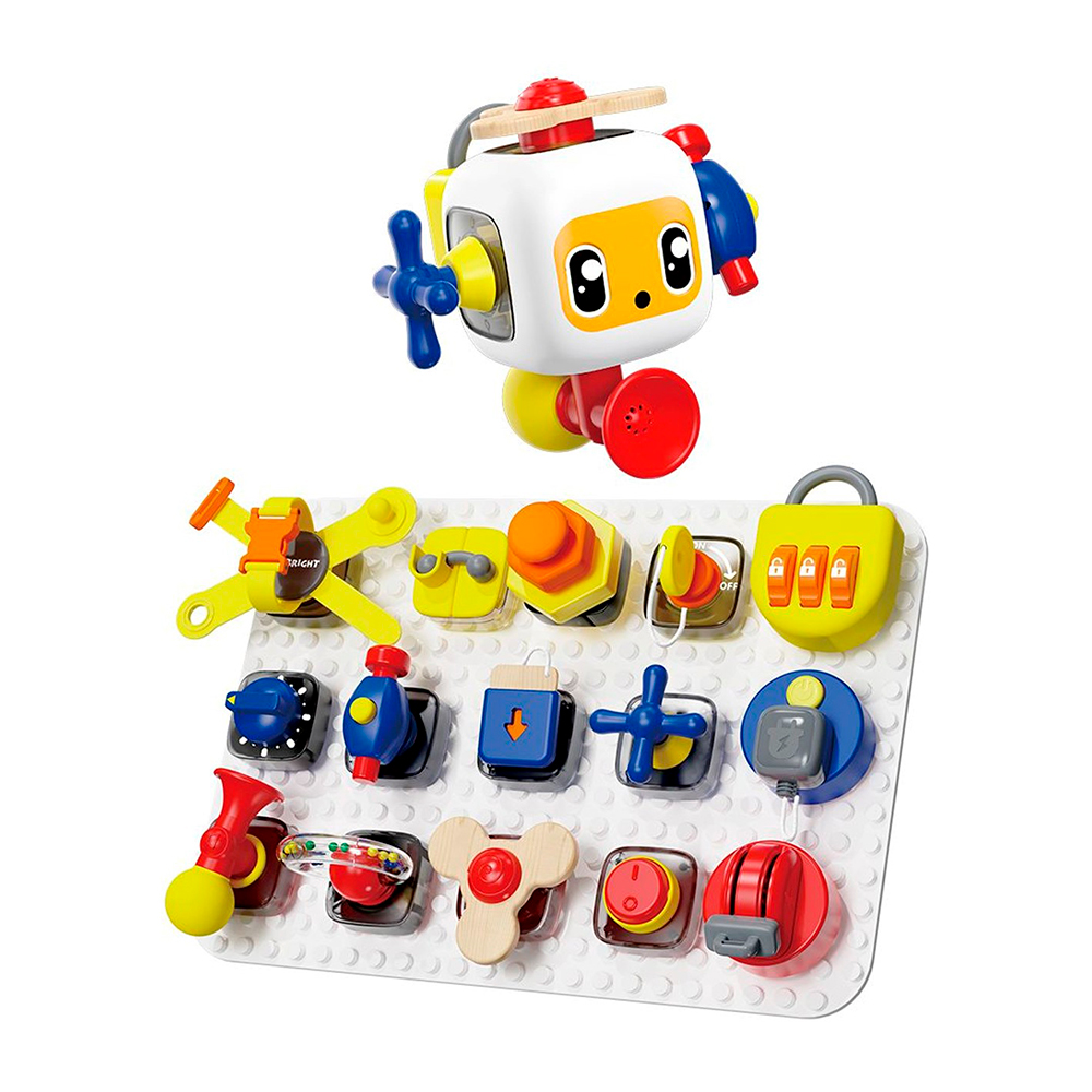 The Busy Board Deluxe set is an educational toy that features 15 different parts for kids to play and learn. These different sizes, textures, and shapes are designed to help kids develop fine motor skills such as hand-eye coordination, grasping, and manipulation ability. The easy-to-play educational toy attracts children’s attention, keeping them engaged for long periods of time. The busy cube is designed with soft and smooth touch, so it's not easily dropped by kids. Plus, it has a compact size that makes it easy to carry around, lets kids play freely at home, in the street, or even on the plane.