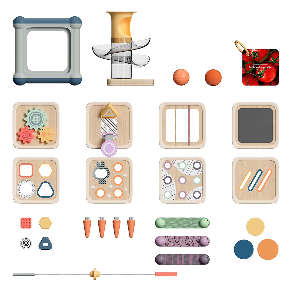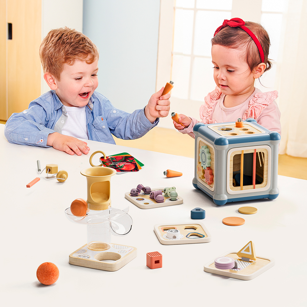 Designed to stimulate sensory perception, enhance fine motor skills, and promote cognitive development, this activity cube is an ideal blend of learning and fun. Its detachable sides offer easy storage and a variety of play methods, while the safe and durable materials ensure a lasting addition to your child's playtime. Perfect for gifting, this unisex cube is bound to delight any toddler. Sky-High Fun: Watch your toddler's delight as they drop balls down the spiraling tower, learning about gravity and motion. Turn and Learn: The colorful gears provide a hands-on lesson in mechanics and cause-and-effect. Fit for Fun: Sorting shapes promotes problem-solving skills and teaches toddlers to recognize different geometric forms. Gather and Grasp: Picking and placing carrots hones fine motor skills while mimicking the fun of gardening. Rainbow Connection: This game introduces color recognition, encouraging toddlers to match hues with corresponding slots. Clink and Think: Dropping coins into a slot helps with precision and understanding object permanence. Stretch and Sort: Stretching bands and sorting objects strengthens dexterity and cognitive sorting abilities. Pull-Along Play: Enhance coordination and balance as toddlers pull this toy, igniting their sense of motion. Healthy Habits: Introduce concepts of nutrition and variety with this colorful cognition book. Secure and Sturdy: Rest assured with a toy crafted from high-quality ABS material, perfect for enduring the enthusiasm of little explorers. Reflections of Joy: Self-discovery and emotional intelligence bloom as toddlers interact with their own reflections.