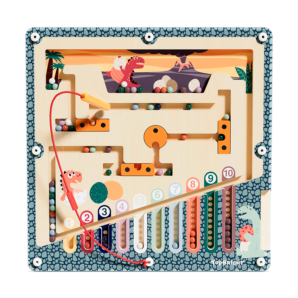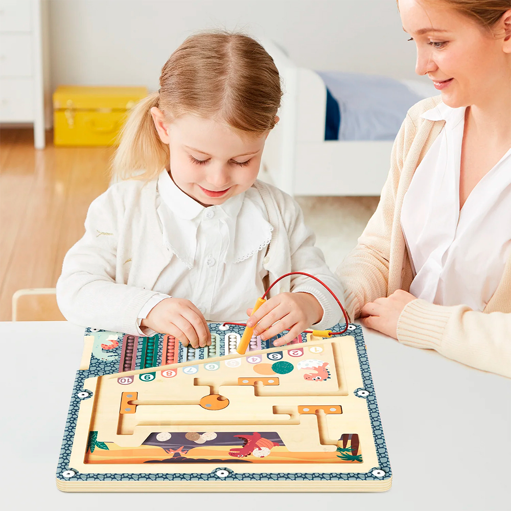 Ce puzzle interactif en bois est à la fois divertissant et éducatif. Il présente un dessin de dinosaure coloré et intègre des chiffres, des exercices de motricité fine, un stylo magnétique et 55 perles. C'est un excellent moyen pour les enfants de s'amuser tout en développant d'importantes capacités cognitives et de résolution de problèmes. Offrez-le en cadeau ou faites-en un élément essentiel de votre classe - dans tous les cas, il s'agit d'une combinaison parfaite de jeu et d'apprentissage. Naviguez dans un paysage préhistorique grâce à deux niveaux de jeu qui s'adaptent au rythme d'apprentissage de votre enfant. Commencez par trier les couleurs dans le mode de base, puis passez à la navigation par obstacles pour un défi stimulant. C'est un jouet qui grandit avec les capacités de votre enfant, garantissant un engagement durable et des opportunités d'apprentissage. Le labyrinthe d'œufs de dinosaure n'est pas seulement amusant, c'est aussi un outil de développement. En manipulant les billes magnétiques, les tout-petits apprennent à reconnaître les couleurs et les chiffres, à compter et à se concentrer. Ce tableau d'activités est un moyen agréable de jeter les bases de la réussite scolaire dans les premières années. Fabriqué en bois naturel et recouvert d'une peinture non toxique, il est conçu avec des bords lisses et un labyrinthe en acrylique robuste pour garantir une durabilité à long terme. Les parents peuvent avoir l'esprit tranquille pendant que leurs petits profitent d'une expérience de jeu sûre et engageante.
