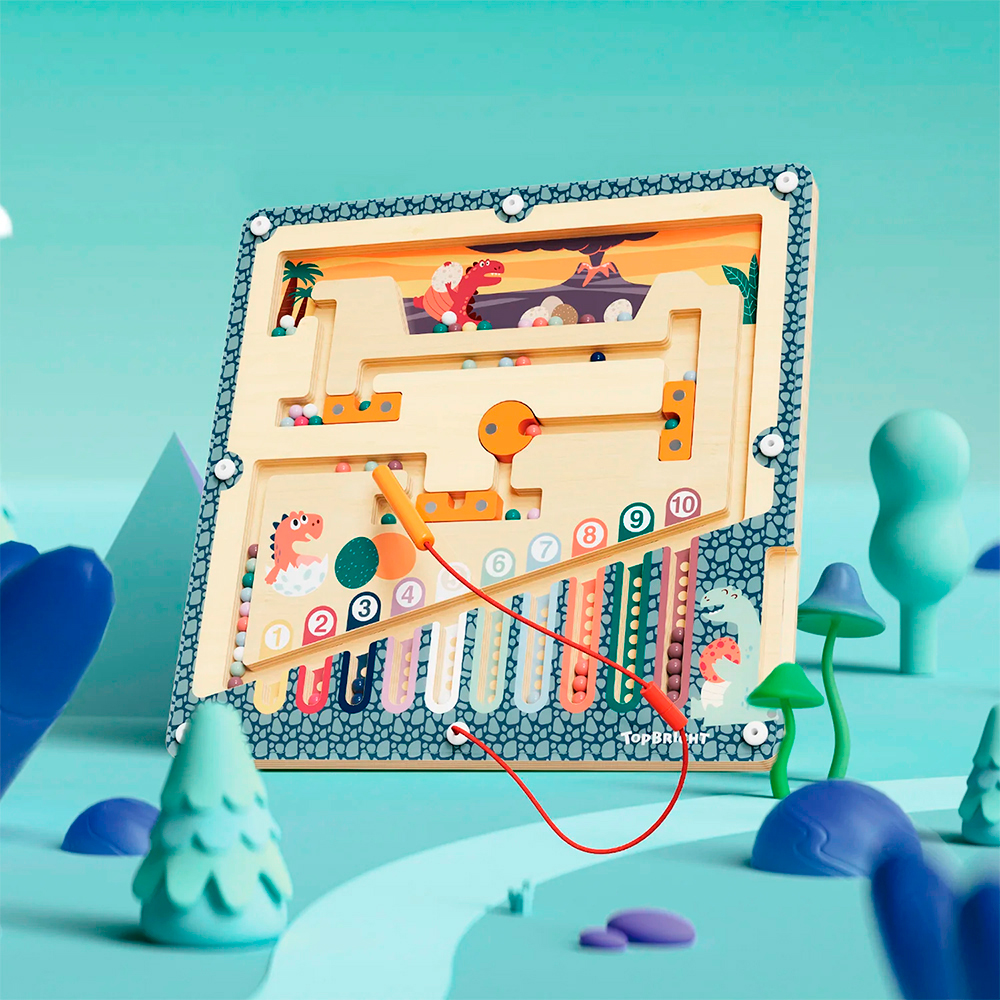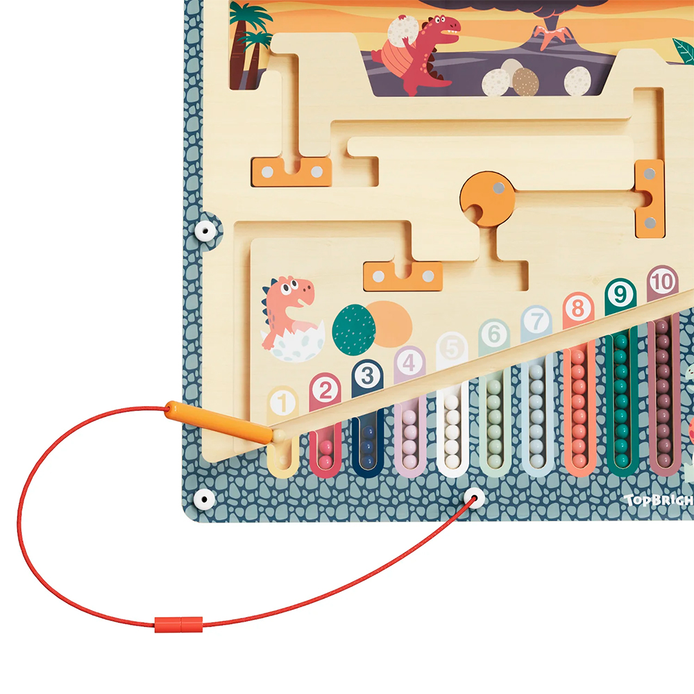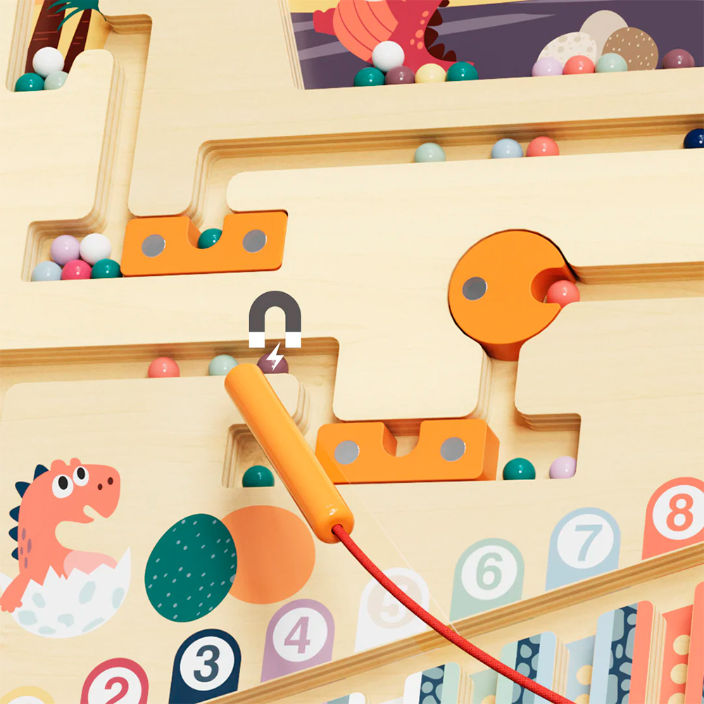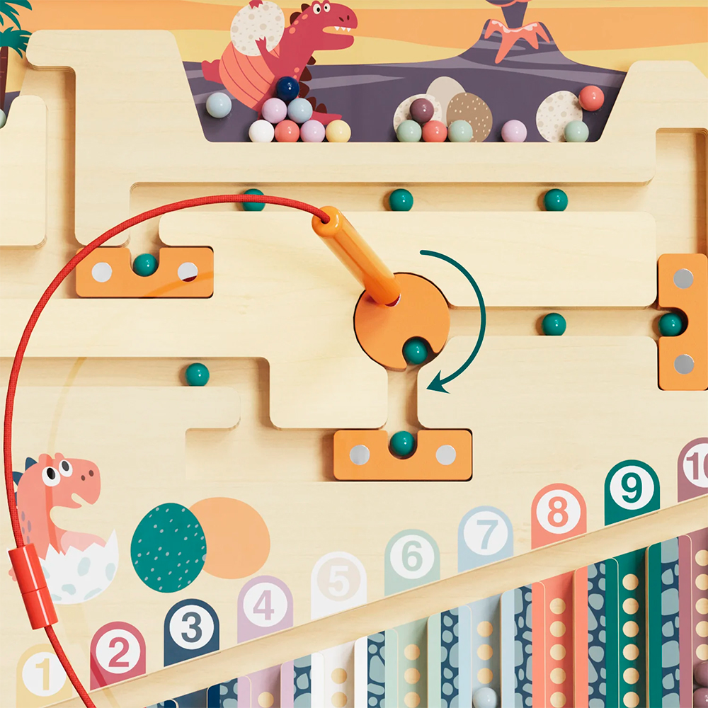 Ce puzzle interactif en bois est à la fois divertissant et éducatif. Il présente un dessin de dinosaure coloré et intègre des chiffres, des exercices de motricité fine, un stylo magnétique et 55 perles. C'est un excellent moyen pour les enfants de s'amuser tout en développant d'importantes capacités cognitives et de résolution de problèmes. Offrez-le en cadeau ou faites-en un élément essentiel de votre classe - dans tous les cas, il s'agit d'une combinaison parfaite de jeu et d'apprentissage. Naviguez dans un paysage préhistorique grâce à deux niveaux de jeu qui s'adaptent au rythme d'apprentissage de votre enfant. Commencez par trier les couleurs dans le mode de base, puis passez à la navigation par obstacles pour un défi stimulant. C'est un jouet qui grandit avec les capacités de votre enfant, garantissant un engagement durable et des opportunités d'apprentissage. Le labyrinthe d'œufs de dinosaure n'est pas seulement amusant, c'est aussi un outil de développement. En manipulant les billes magnétiques, les tout-petits apprennent à reconnaître les couleurs et les chiffres, à compter et à se concentrer. Ce tableau d'activités est un moyen agréable de jeter les bases de la réussite scolaire dans les premières années. Fabriqué en bois naturel et recouvert d'une peinture non toxique, il est conçu avec des bords lisses et un labyrinthe en acrylique robuste pour garantir une durabilité à long terme. Les parents peuvent avoir l'esprit tranquille pendant que leurs petits profitent d'une expérience de jeu sûre et engageante.
