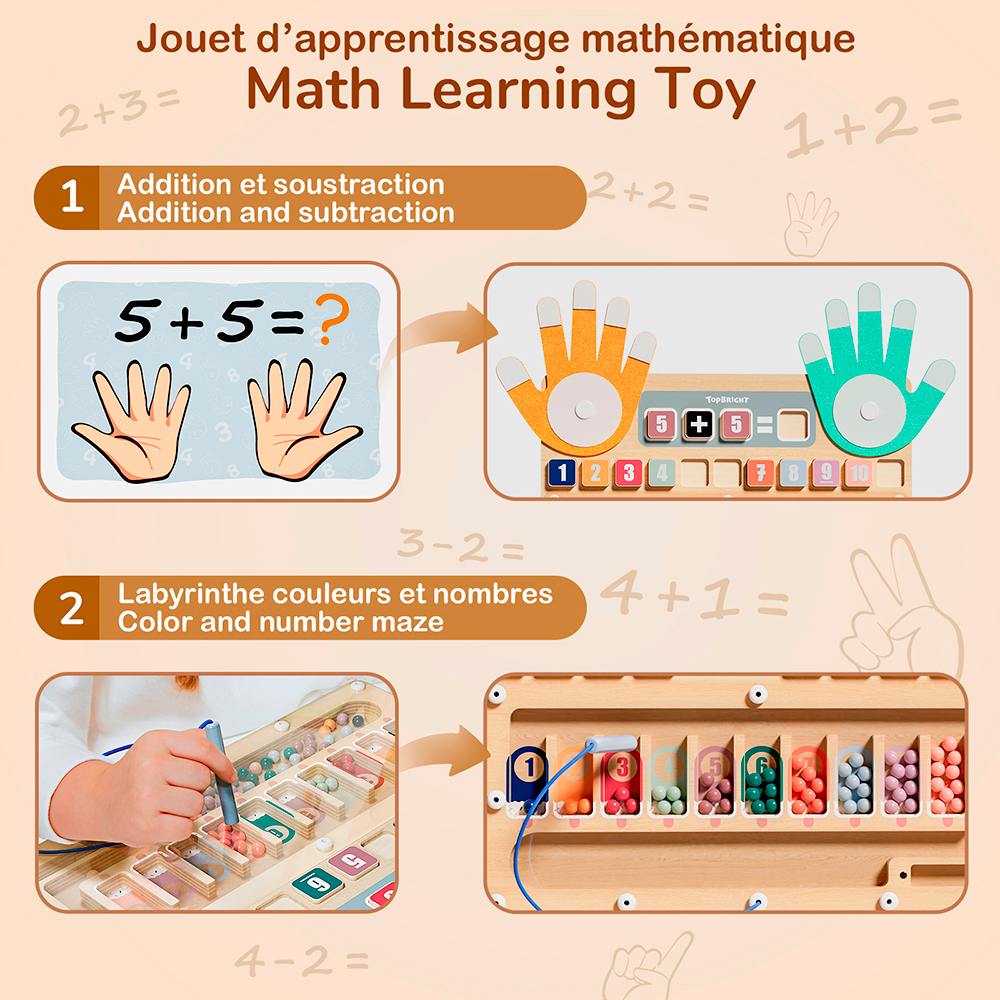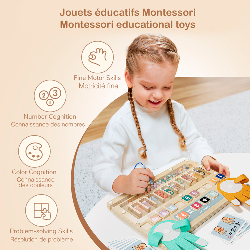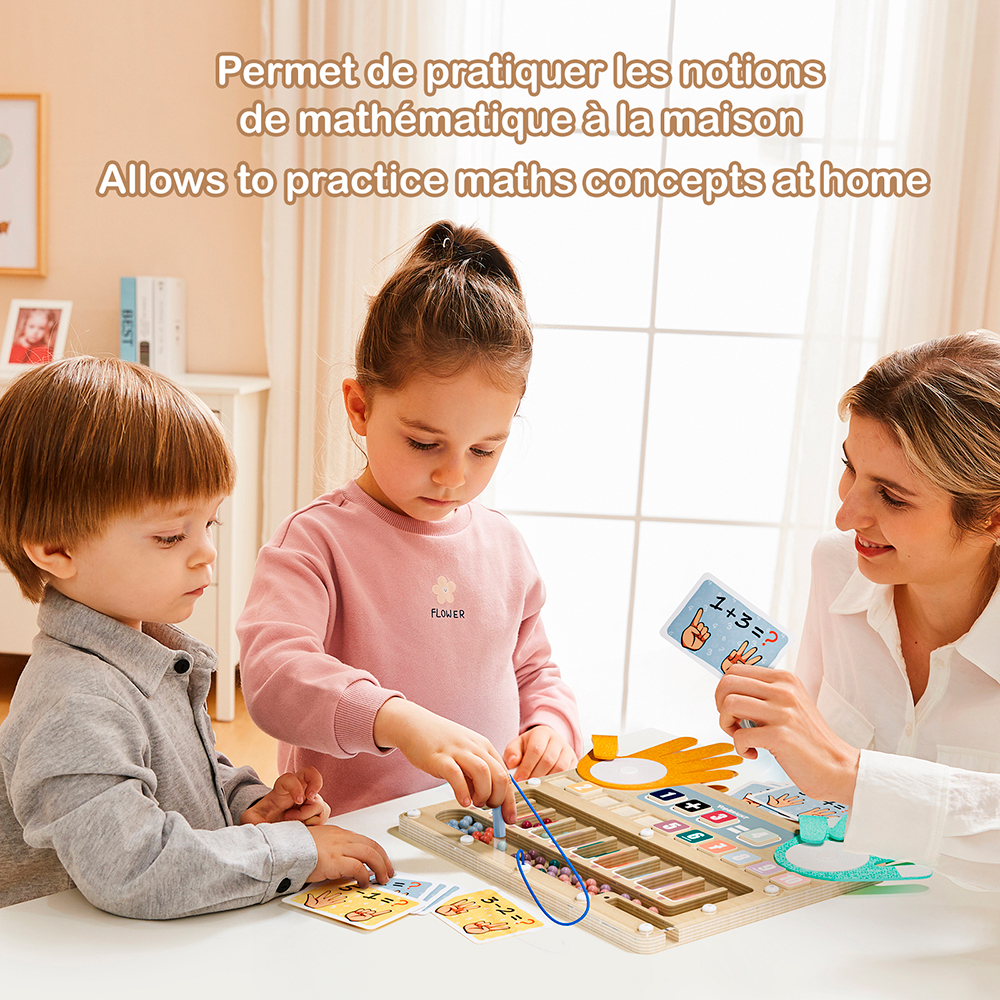 Ce jouet éducatif pour la petite enfance est livré avec tout ce dont votre enfant a besoin pour commencer à apprendre à compter de manière amusante et interactive. Idéal pour les enfants de plus de 3 ans, ce jeu comprend des blocs de chiffres en bois colorés, des cartes-éclair d’apprentissage recto verso, un tableau en bois robuste, des palmes en feutre doux, un stylo magnétique et un arc-en-ciel de perles magnétiques pour une expérience pratique de comptage et de tri. Sûr, solide et intelligemment conçu, c’est le cadeau idéal pour améliorer le développement cognitif et les compétences motrices.