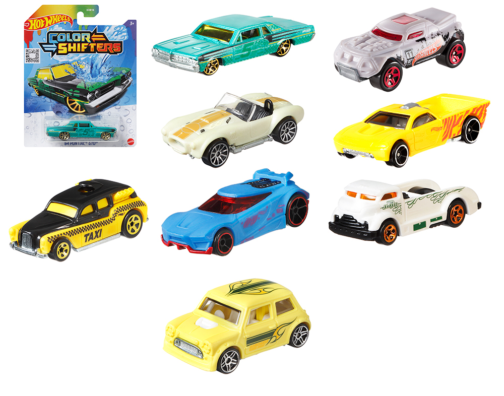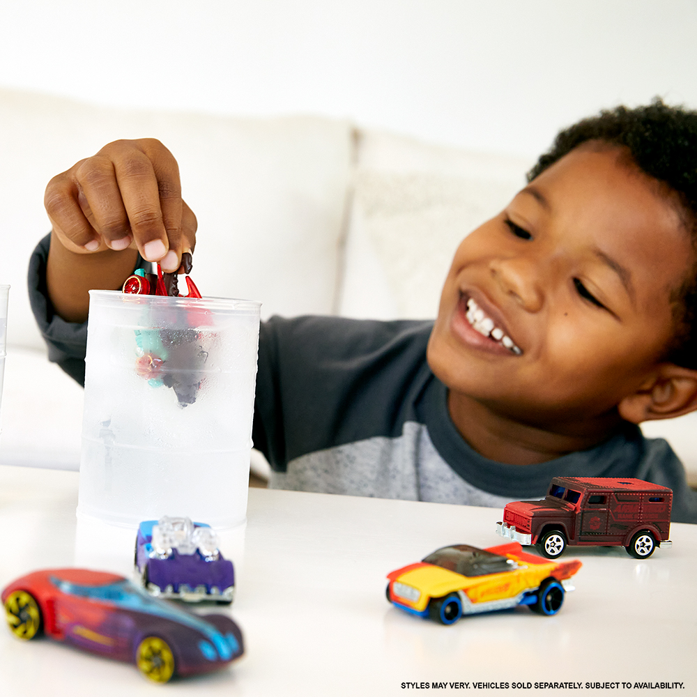 Les enfants peuvent changer la couleur de leurs voitures Hot Wheels avec les véhicules Color Shifters à l'échelle 1:64! C'est simple: l'eau tiède change la couleur de la voiture, et l'eau glacée la change à nouveau. Certains véhicules peuvent même se transformer en plusieurs couleurs! Une grande variété de décos et de couleurs cool offre quelque chose de spécial pour chaque amateur de voitures. Éclabousse ou trempe les véhicules Color Shifters dans l'eau et regarde chaque voiture se transformer instantanément! C'est comme si tu avais deux voitures en une: tu prends la route, tu fais la course et tu changes de couleur pour recommencer la course.