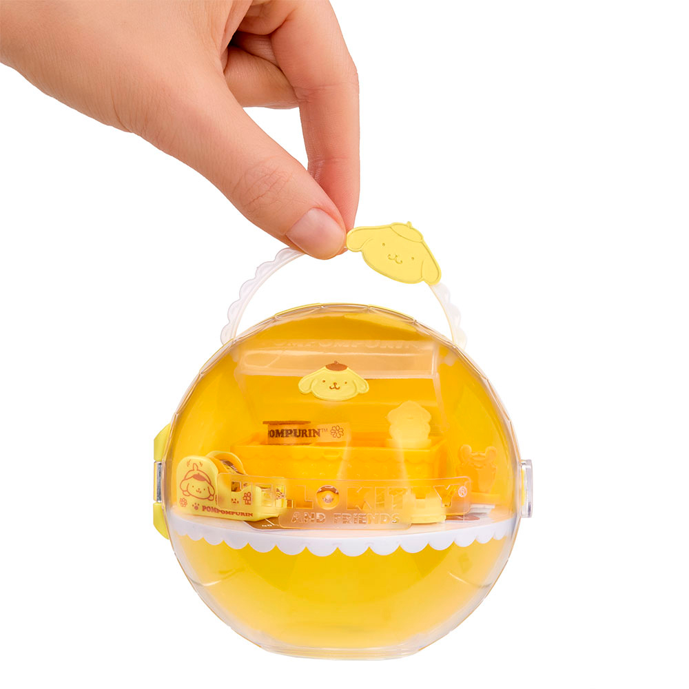 Chaque boule comprend de mini articles réalistes sur le thème des articles de bureau que vous pouvez créer. Allant des gommes à effacer en forme de Kuromi jusqu’à un cahier Cinamoroll, et à un ensemble de bureau Keroppi avec rangement, le plaisir réside dans le mystère! Il y en a 8 à collectionner dans cette série! Consultez le guide de collection pour découvrir quel mini article de bureau Hello Kitty and Friends vous avez déballé. Suivez ensuite la carte d’instructions afin de créer votre mini ensemble de collection. Chaque boule se transforme en un présentoir Hello Kitty and Friends, idéal pour présenter votre création! Il existe plusieurs coffrets uniques à collectionner dans cette gamme entière!