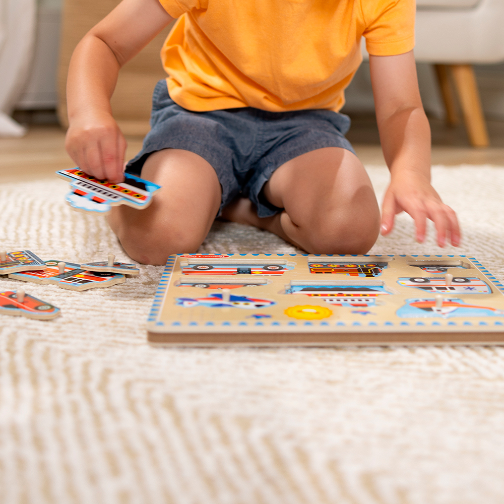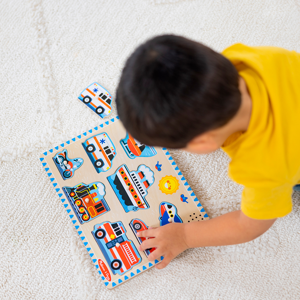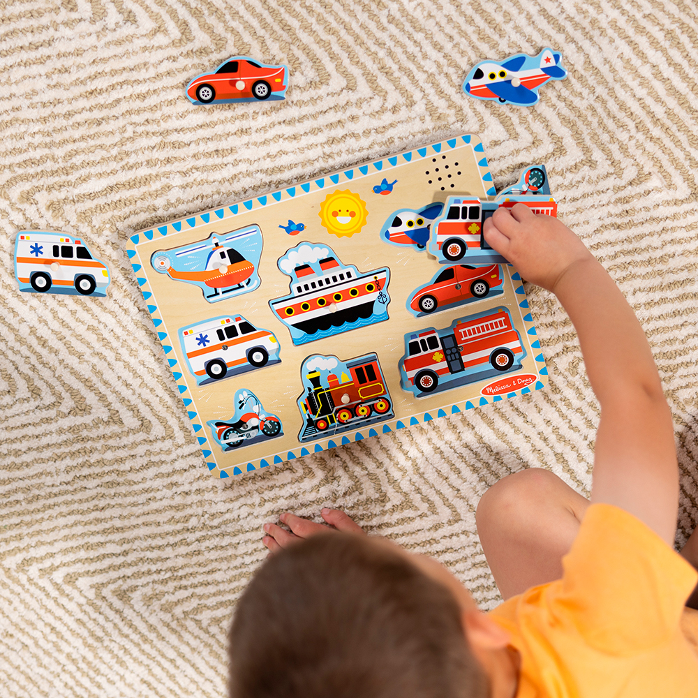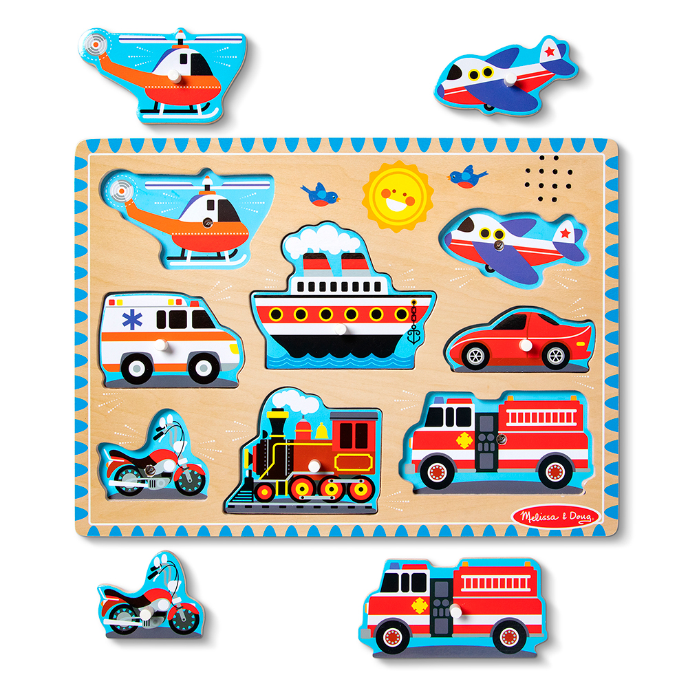 Lorsque les enfants placent correctement une pièce du casse-tête sur le plateau, ils peuvent l’entendre émettre un son, un bip ou un grondement! Le puzzle comprend huit superbes sons et une image correspondante en couleur sous chacune des huit pièces en bois. Les pièces du casse-tête sont d’une taille idéale pour les petites mains et le casse-tête mesure 8,75 pouces x 11,75 pouces x 1 pouce. (CONSEIL : le casse-tête est doté de capteurs activés par la lumière ; pour de meilleurs résultats, exposez le capteur en retirant une pièce dans une pièce très éclairée, puis faites jouer le son en replaçant la pièce dans la planche).