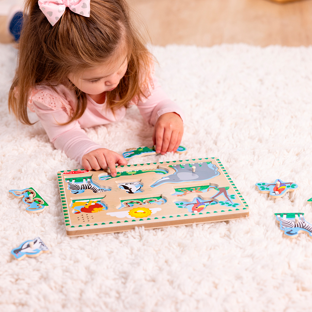 Each animal piece has a matching full-color picture beneath. Eye- and ear-catching puzzle enhances matching and listening skills. (TIP: Puzzle has light-activated sensors; for best results, expose the sensor by removing a piece in a brightly lit room, then make the sound play by replacing the piece in the board.)