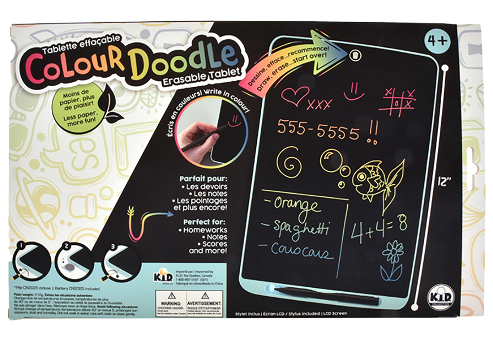 L’accessoire numéro un pour la prise de notes ou les créations artistiques des enfants. L’écriture est en couleurs et s’efface, afin de pouvoir recommencer à l'infini! Elle possède un écran LCD de 12 pouces et le stylet est inclus. Que ce soit pour les messages, les devoirs ou la liste d’épicerie, tout est permis!
