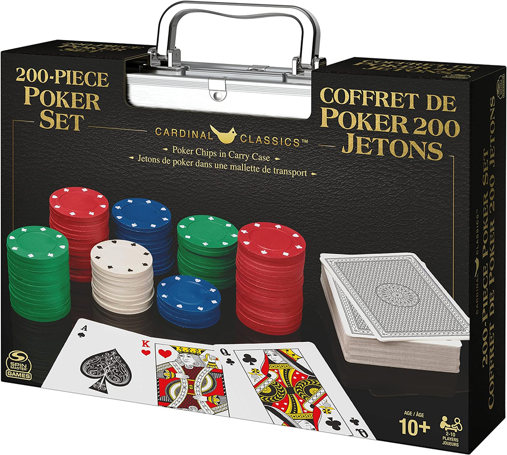 Avec 200 jetons bicolores et un jeu de cartes de poker classiques, ainsi que des règles détaillées pour le Texas Hold 'Em.
