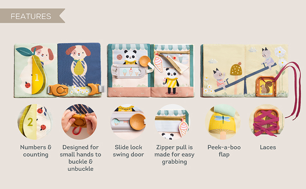 A unique and engaging book designed for toddlers aged 18 months and up. Packed with 15 engaging activities like zippers, buckles, laces, and peek-a-boo, this book enhances motor skill development and introduces essential ''big kid'' abilities such as dressing and buckling up. An empowering learning tool to ignite babies’ imagination.