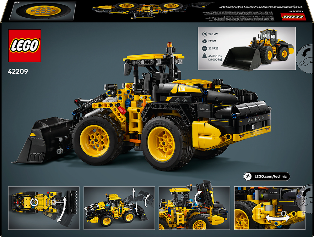 Power your construction adventures the modern way with the LEGO Technic Volvo L120 Electric Wheel Loader. Put the loader to work as you try out the articulated steering. Raise, lower and tilt the shovel, then look beneath the engine cover to inspect the 3 spinning gears. The model isn’t motorized, but you can use your imagination to power all sorts of construction adventures.
