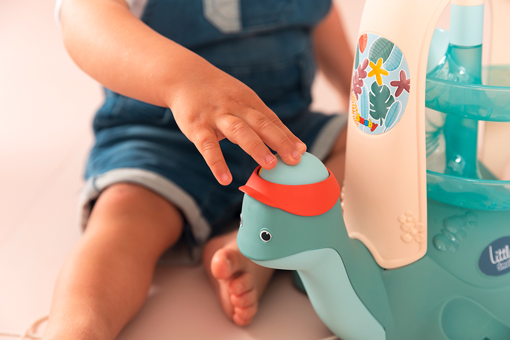 Un produit complet et amusant : Avec ses 2 balles incluses, bébé pourra les faire glisser sur la rampe et choisir de l'arrêter ou non grâce à un bouton.