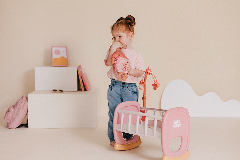 Grâce au système de bascule du lit et au mobile à tourner manuellement, votre petit n'aura aucun mal à bercer son poupon et à l'endormir!