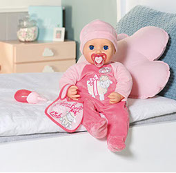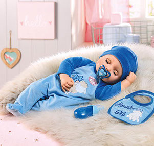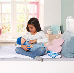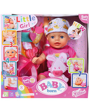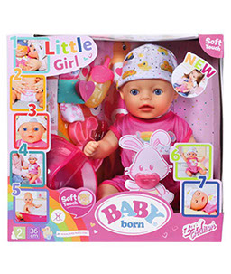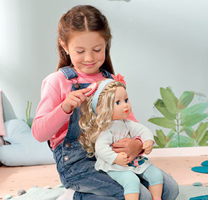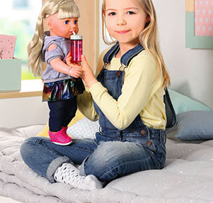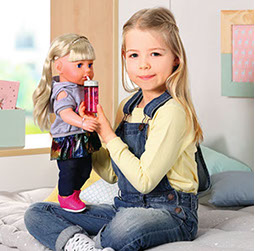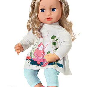 The Little Girl doll with its soft body offers lots of role play fun for young doll parents from two years on.Just like other babies, the sweet little one’s favourite activities include sucking on her bottle and sleeping.